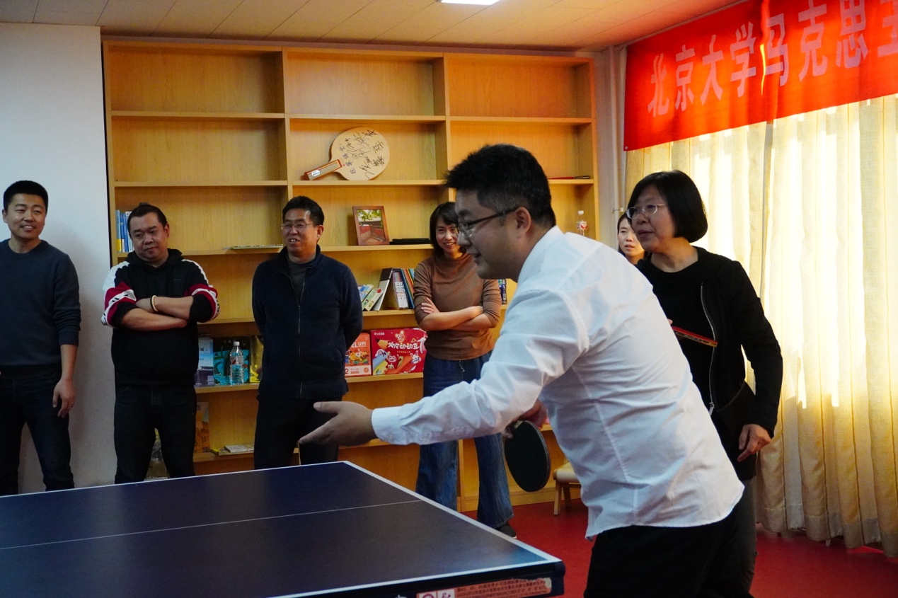 11月19日中午,北京大学马克思主义学院第二届教职工乒乓球赛半决赛在理科5号楼440顺利举行。现场气氛热烈而轻松,各所老师们以饱满状态走上赛场,既比拼技艺、更交流友谊。经过激烈拼搏,科社所和行政1队杀入决赛,党建所和思政所获得并列第3名的佳绩。