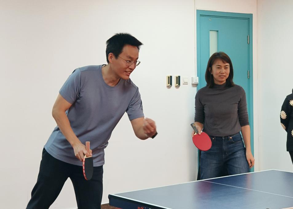 11月12日中午,北京大学马克思主义学院第二届教职工乒乓球赛八强赛第一、二回合比赛在理科5号楼440顺利举行。赛场氛围热烈欢乐,教职工们的加油声与笑声交织,尽显融洽暖意。最终党的建设研究所(党建所)与科学社会主义与国际共产主义运动研究所(科社所)更胜一筹,顺利晋级下一轮。