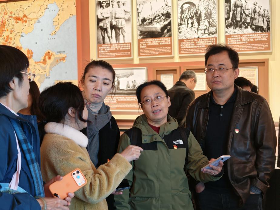 随后,老师们走进纪念馆,在一幅幅历史图片、一件件革命文物前驻足沉思,回顾党领导全民族众志成城英勇抗战的艰辛历程,深切缅怀革命先烈的英勇事迹,感悟党在全民族抗战中的中流砥柱作用。期间,中国化近现代史党建支部的史春风老师结合馆内展品,现场讲解历史细节,并与大家展开互动讨论。