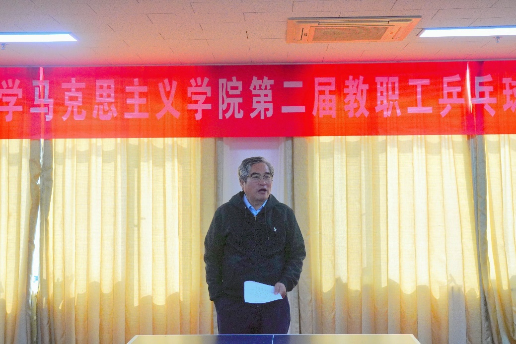 马克思主义学院党委书记孙来斌教授指出,“完全人格,首在体育”。学院党政班子高度重视教职工文体活动,希望通过乒乓球这一“国球”赛事,激发教职工的运动热情,提升身体素质,促进情感交流,增强集体荣誉感与凝聚力。他对学校及体育教研部长期以来给予学院的关心与支持表示诚挚感谢,并强调学院将继续把体育活动作为关键内容,推动教职工身心健康与学院建设同频共进。